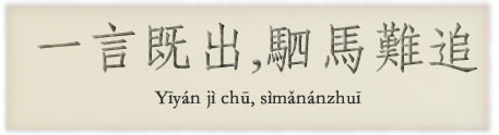Słowo raz wypowiedziane nie może być cofnięte nawet przez zaprzęg czterech koni; co zostało powiedziane, nie może być cofnięte.