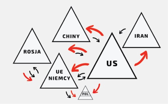 Precyzyjne naświetlenie zależności między mocarstwami, państwami średnimi i aktorami niepaństwowymi musiałoby zająć kilkanaście stron. Stąd poniższa analiza jest z założenia skrótowa i wyrywkowa. Ma jedynie skierować snop czytelniczego zrozumienia we właściwym kierunku. Spójrzmy na poniższy schemat: